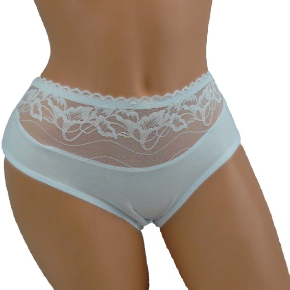 Lekko opinające figi damskie bawełniane z piękną koronką w kwiatowym motywie.