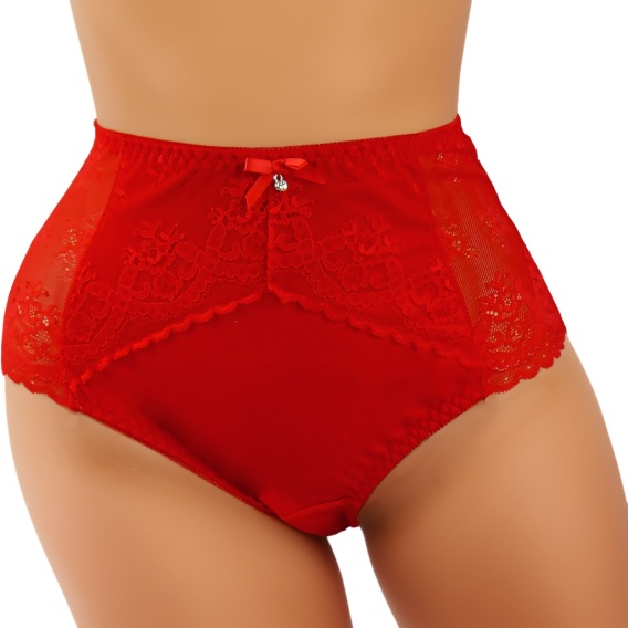 Pełne Opinające Majtki Damskie Figi Koronkowe Wysoki Stan 3XL czerwone