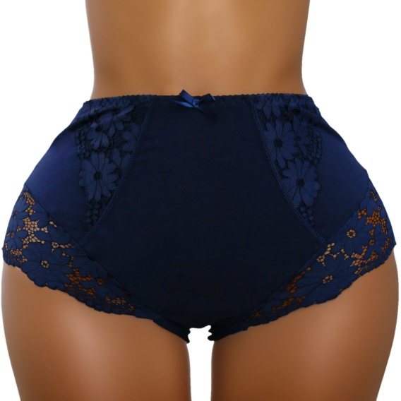 Wysoki Stan Pełne Koronkowe Figi Damskie Majtki Bawełniane 3XL granatowe